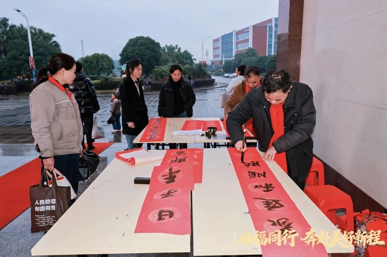 在送?;顒蝇F(xiàn)場,歡聲笑語不斷。公司特別邀請書法家現(xiàn)場揮毫潑墨,為員工撰寫福字和對聯(lián)。一筆一劃間,是傳統(tǒng)文化的傳承,更是公司對員工最美好的祝愿。